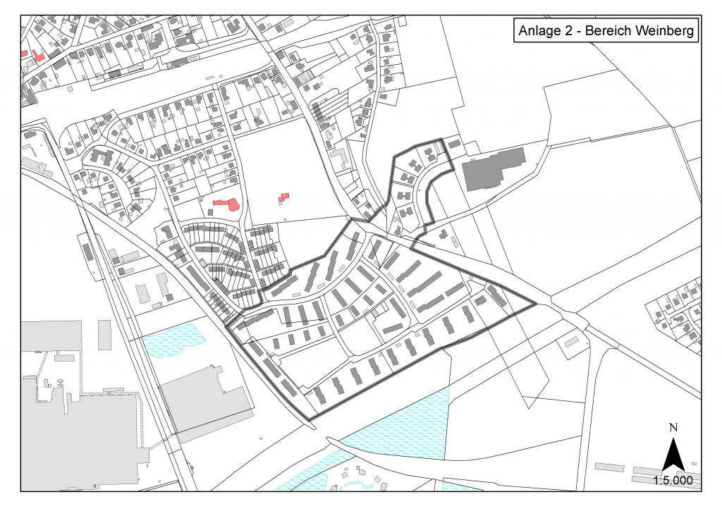 Das Sanierungsgebiet „Stadtumbau Weinberg“ wurde dabei verkleinert. Im Nordwesten wurde ein Weg und eine Straßenteilfläche hinausgenommen.